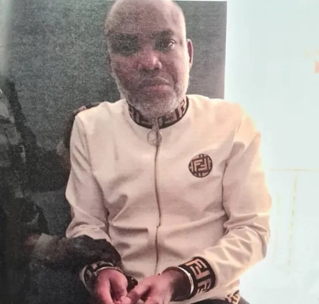 Court refuses application to transfer nnamdi kanu to kuje correctional center.3 persons of his choice can pay him a visit to the dss .
